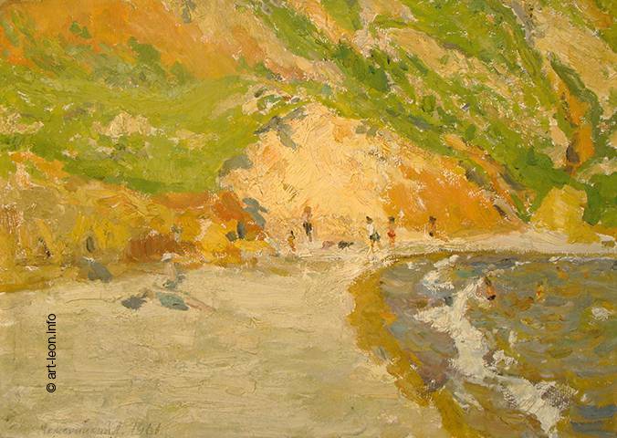 Beach of Bolshoi Fontan1960, Cardboard, Oil, 70 x 50 cm
