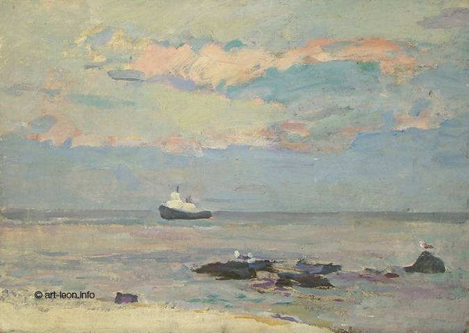 Towards Spring. By the Sea1970s, Canvas, Oil, 28.5 x 43 cm