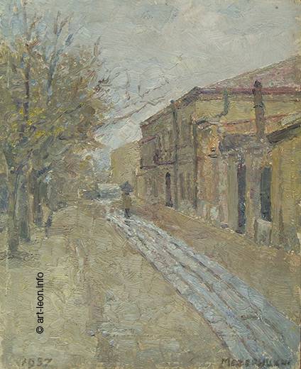 Rainy Day. Odessa1957, Cardboard, Oil, 24 x 29.5 cm
