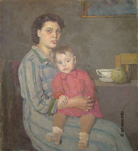 Ehefrau mit Tochter Julia1956, Leinen, Öl, 56 x 49